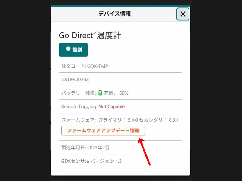 センサを最新の状態に保つため、表示されたら更新を完了することをお勧めします。ただし、メッセージで特別な指示がない限り、都合の良い時に更新して授業や実験を中断する必要はありません。 - ファームウェアの更新に失敗したらどうすればいいですか?