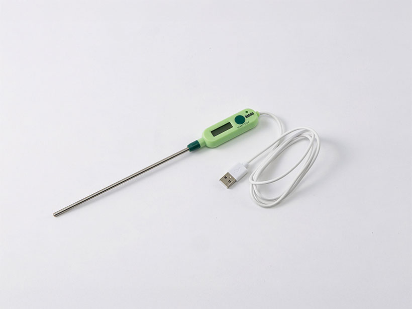 温度を測定するセンサです。専用Webアプリ「Sugu-T-WEB」をつかって時間的に変化する値をリアルタイムでグラフ化することができます。
