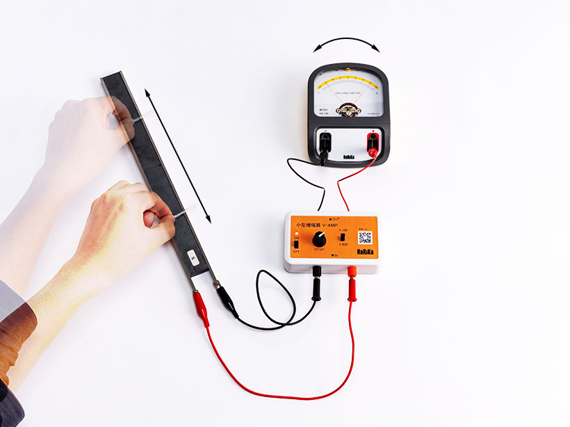 検流計や各種センサと組合わせて使用することで、通常の検流計では測定できなかった地磁気による発電の実験などの「微小な電流の測定」が可能になります。